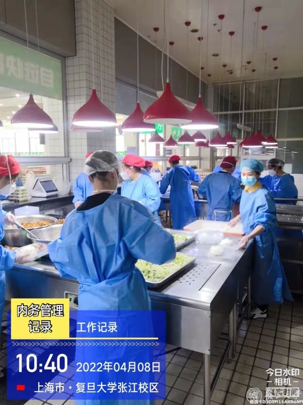 考虑到疫情中诸多的不可控因素,在位于浦东的张江校区食堂,经理易昌英将员工划分为两个批次,分别在两个楼栋休息。“即便发生突发状况,也保证食堂不停摆,师生吃上饭。”