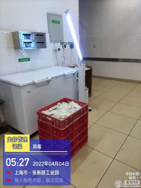 为了保证食品安全,每一座食堂每天进行四次消杀,当天上报。江湾食堂设安全专员,每天检查包括操作流程、食材使用和储存是否规范等;张江食堂要求食材必须经过两遍消毒。送餐过程中,人员也要求做好防护措施,保温箱从宿舍区运回后,放置后立刻进行消毒处理,然后投入下一轮循环使用。
