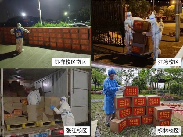 由于货量较大,约十位总务处工作人员忙碌2个小时、中途休息3次,才将本部物资全部卸下并消杀。目前,所有物资陆续运送至四个校区,近期已陆续发放至同学们手上。