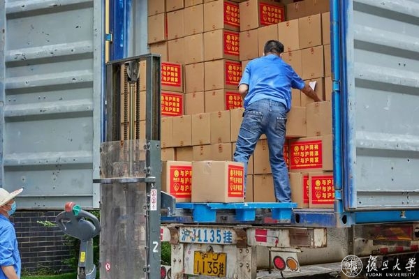 经过两天多的长途跋涉,这批由黄老五食品股份有限公司自行筹措,价值近50万元的6000份爱心物资从四川内江出发,驰援2000公里之外的上海复旦。