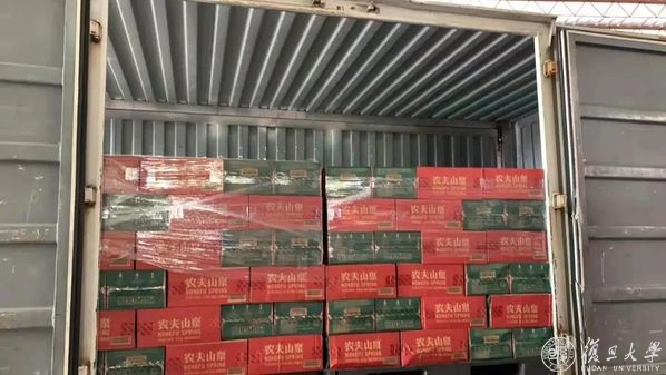 4月18日,由云南永平捐赠的矿泉水运抵张江校区。据悉,得知张江校区缺瓶装水后,云南永平县委和县政府高度重视,永平乡村振兴局从县里抗疫资金里拨款4万元,购买1000箱共计24000瓶矿泉水支援复旦大学疫情防控工作。