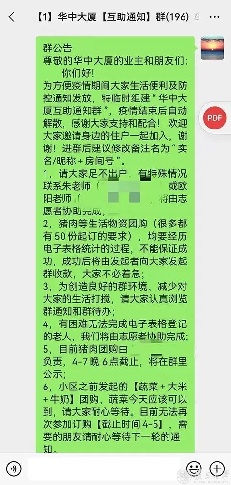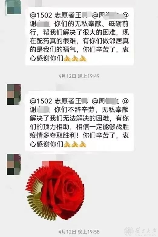 有了微信群,就确保了每次通知和物资配送快速及时覆盖到每个人,博士生们还发挥年轻人的优势,帮助大家团购物资,一户户分发配送,逐步帮大家解决了生活上的问题,也收获了很多感谢。