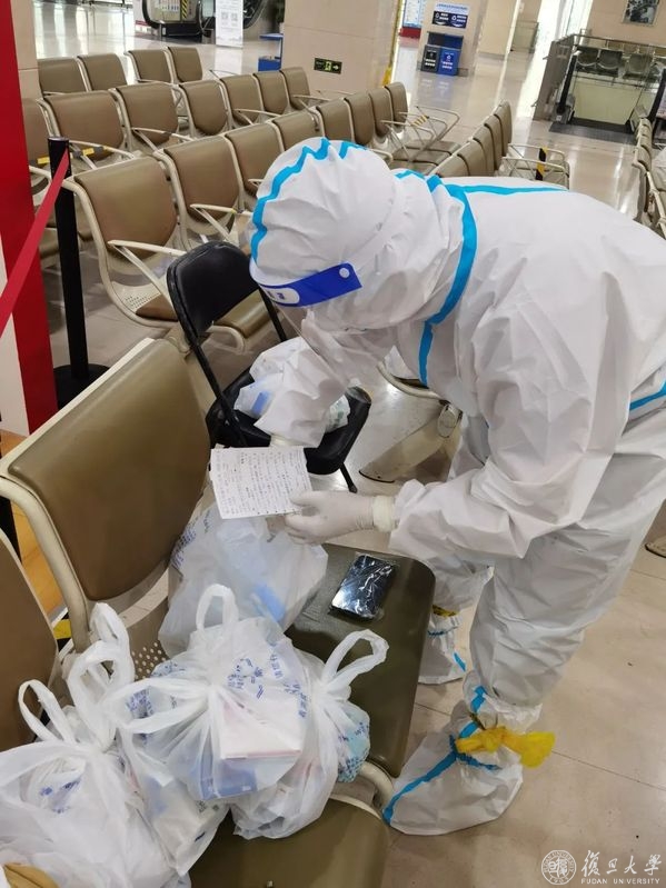 博士生们的志愿服务工作也得到了华山医院的关心支持。华山医院党委副书记高继明代表医院亲自送来物资,学工部部长向阳为志愿者们申请了防护物资,叮嘱大家做好志愿工作的同时也要注意自身防护。