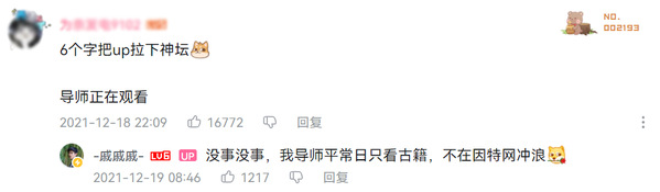 有人在留言区揶揄UP主:该视频会被他的导师看到,但戚宇辰相当自信地表示:导师并不在互联网上冲浪。