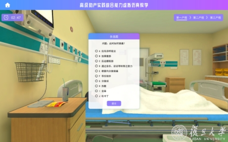 在全球疫情常态化的背景下,为了最大限度地保证妇产科护理实践教学的育人效果,护理学院在传统理论授课、技能操练、高仿真教学的基础上,利用3D仿真、VR、WebGL、OpenGL等技术建模,成功开发了“高级助产实践综合能力虚拟仿真教学系统”。该项目能够引导学生在虚实结合的产房场景中,沉浸式体验分娩过程和学习分娩知识,以提升学生的人文关怀理念、临床思维能力,以及解决产科临床护理问题的综合能力。