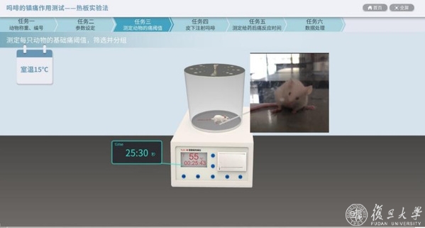 该项目还结合了药理学相关的知识点,融入了“吗啡成瘾性”和“吗啡的镇痛作用测试”两个药理学虚拟实验。鉴于药物吗啡的特殊性,采用虚拟实验的方法可以减少此类管制性麻醉剂在实验教学中的使用,同时也能够帮助学生了解此类行为学药理实验的研究方法。同时,项目将药用植物学相关知识与其对应的药理学知识点有机结合,使学生将知识点跨学科地串联起来,有助于整体联系和掌握好专业知识点,是对虚拟实验形式探索的一次有益尝试。