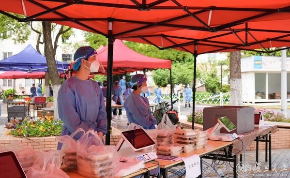自5月7日以来,学校采取自助取餐方式,为逐步过渡到校园疫情防控常态化管理做准备。