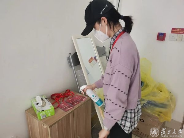 在网格化分类管理期,范佳晨多次参与户外保障志愿者工作。她时常提醒同学们不要串网格、户外活动回楼时要做好手部和鞋底消毒等。自己在消杀方面,也是毫不马虎。“希望同学们能注意日常的消杀,守护我们来之不易的战斗成果。”
