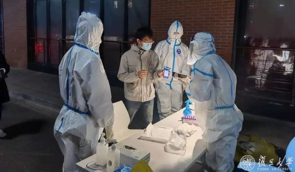 在复旦上医,每一轮校园核酸检测的专业与高效为在校师生职工提供安心保障。这背后,是采、送、检三个环节的高效、精准衔接。多方接力,组成核酸采样和送样“天团”,附属医院定点检测机构争分夺秒昼夜奋战,大家日复一日地忙碌着,与时间赛跑,守护校园安宁。