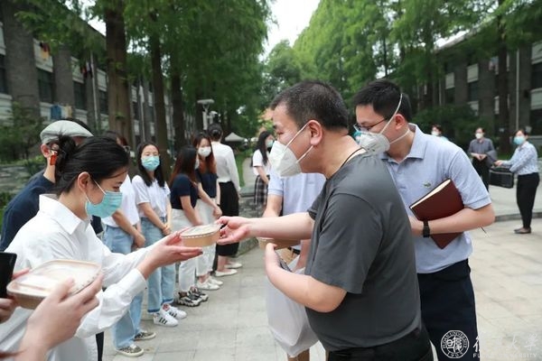 随后,焦扬、金力一行到本部任重书院中庭,慰问住楼辅导员、楼层长代表和本部包保干部,了解学生学业考核、离校、留校等情况,询问住楼辅导员、楼层长学习生活上的困难和需求。有住楼辅导员提出,毕业生关心学校是否还会举办毕业相关活动等问题。焦扬表示,学校一定会积极回应毕业生的需求,正在根据疫情防控政策和手势,妥善安排毕业典礼、毕业照拍摄、毕业衫赠送等活动,为毕业生留下美好回忆。
