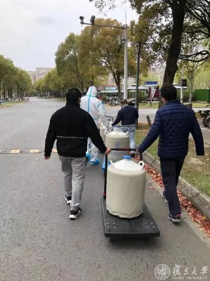 江湾生活园区封闭管理后,学生留在宿舍楼里,很多同学实验室里的实验还没来得及收尾,赵同金带着导师和博后等18人团队接着完成同学们未完成的实验。在实验中,液氮是必不可缺的实验用品,如果液氮不足,可能造成重大损失。代谢院和多家院系多方沟通协调,两次调集液氮资源。