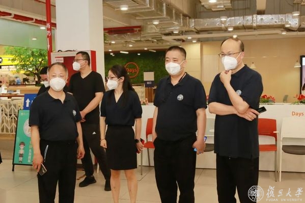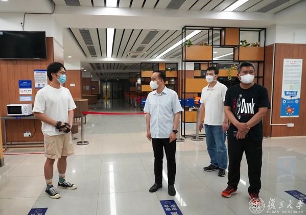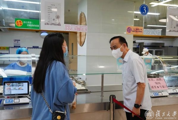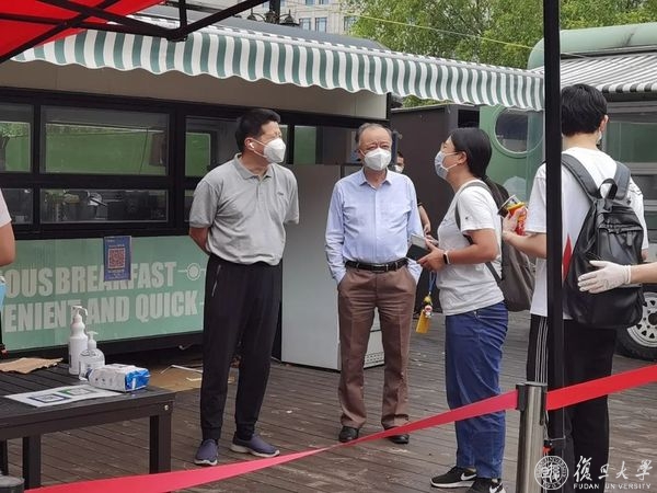6月1日,是复旦大学实行新一轮准封闭管理的第一天,学校邯郸、江湾、枫林、张江四大校区由网格化分类管理,转为“气泡”管理。校党委书记焦扬、校长金力,走访调研邯郸校区新一轮准封闭管理首日情况,常务副校长许征,党委副书记尹冬梅,党委副书记、纪委书记金海燕,副校长陈志敏、汪源源等陪同调研。