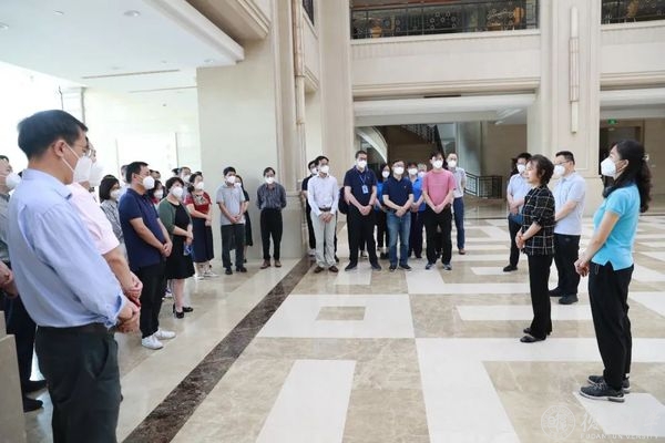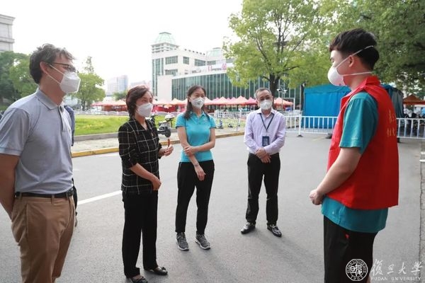 6月6日是复旦大学进入新一轮准封闭管理第二阶段的第一天。下午,校党委书记焦扬走访调研邯郸校区,慰问包保干部,察看东区虚拟通道开通首日情况。党委常务副书记周亚明、党委副书记尹冬梅及相关部门负责人陪同调研。