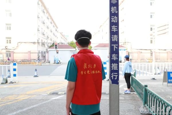 3月13日,复旦启动校园准封闭管理,邯郸校区本部与东区之间开通一条虚拟通道。三路纵队、直线通行,成为网红“最萌过马路”。肖遥所在的东区党员志愿服务队,曾一天117次过马路、走出15000步,为师生通过“虚拟通道”保驾护航。