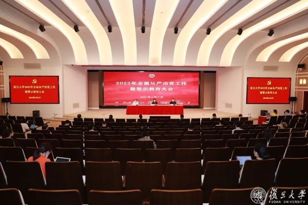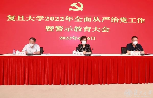 6月6日下午,复旦大学召开2022年全面从严治党工作暨警示教育大会,深化落实党的十九届六中全会、十九届中央纪委六次全会、十一届上海市纪委六次全会以及教育部党组2022年全面从严治党工作视频会议精神,部署学校全面从严治党年度工作,深入开展警示教育。