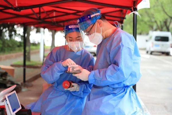 曹晓廉从3月下旬入校增援防控指挥部的工作力量,一直坚守到5月。下沉一线,在北区学生生活园区担任包保干部,做起了网格中的学生工作,做核酸志愿者、运送物资、定点巡逻、了解学生生活学习状态、返乡送站,工作繁忙时一天早中晚排满五班任务。