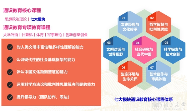 复旦大学有着深厚的文化底蕴、浓郁的人文气息和理工氛围,医学生将有1-2年在校本部选择人文、社科、数理、自然、环境、计算机、新工科、大数据、智能科学等学科的课程学习。复旦上医将通识教育贯穿人才培养全过程,培养学生健全人格和可持续发展能力,培养有温度的创新型卓越医学人才。