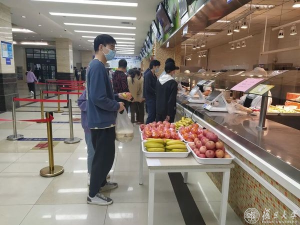 想吃水果,食堂可以供应吗?得知这一需求后,防控办立刻联系总务处,从3月14日起,各食堂增加香蕉、苹果和橘子等水果供应。在校领导的关心下,防控办还积极协调外联处、校团委等部门,争取各类校外资源,实现“一天一苹果”的水果供应接力。