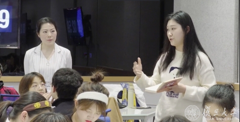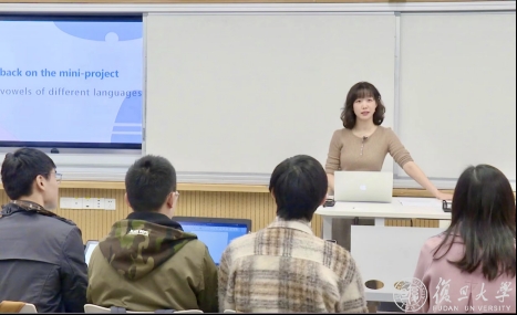 李昕老师(站立者)点评“英语语音学”学生小课题讨论
