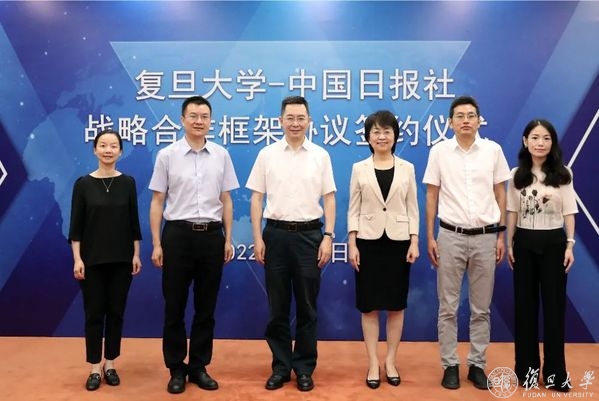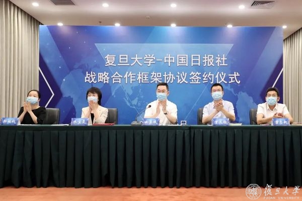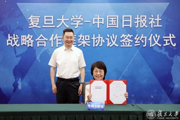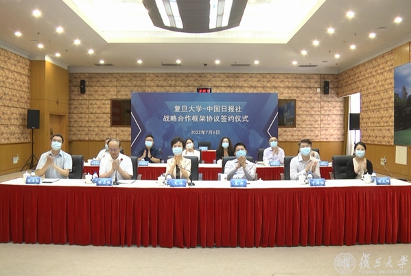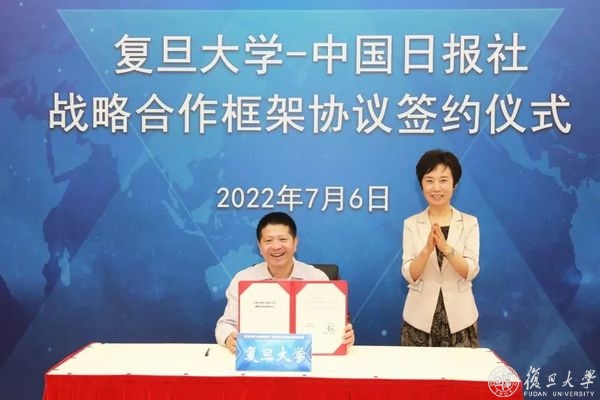 7月6日上午,复旦大学与中国日报社新一轮战略合作框架协议签约仪式在线举行。复旦大学党委书记焦扬、中国日报社社长兼总编辑曲莹璞出席仪式并致辞。在焦扬和曲莹璞的共同见证下,复旦大学党委常务副书记裘新、中国日报社编委兼秘书长朱宝霞分别代表学校和报社签署协议。复旦大学副校长陈志敏主持仪式。