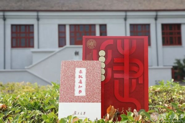 录取通知书封套由复旦大学中文系九四级中国文学专业李德刚校友设计,以“捷报”二字、璀璨之星作为主设计元素。