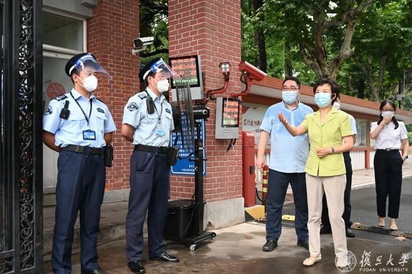 “没有大家的守护,就没有我们的平安校园,你们是守护校园安全的‘无名英雄’,同志们辛苦了!”邯郸校区正门前,焦扬一行看望烈日下坚守岗位的校园安保队伍,询问他们日常工作及生活情况,称赞队员们在疫情期间为守护校园安全做出的贡献。得知队员们每天在烈日下工作数小时,焦扬关照保卫部门合理安排值守,叮嘱大家在严守校门的同时,注意做好防暑降温。暑假期间,各校区数百名安保队员不舍昼夜、奋战一线,对进出校园的来访人员、车辆,始终坚持严格把关,并做好校园内部及周边的日常巡视,牢牢守住校园安全“第一道防线”。