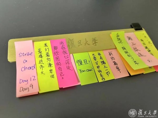马旭宇有一个印着复旦大学LOGO的便签本。他会在上面写一些鼓励自己的话,贴在书桌上,每天学习时看看心目中的学校,激励自己。