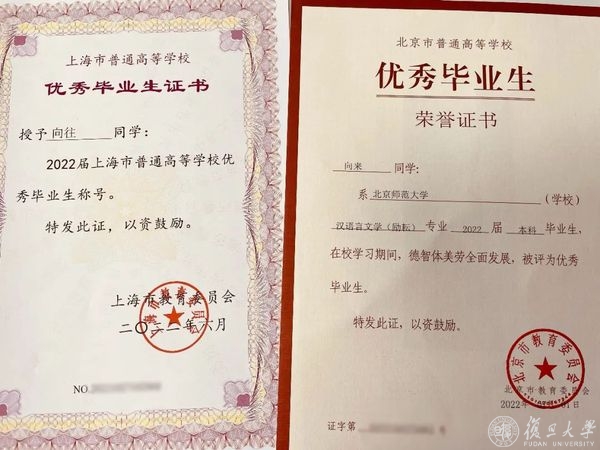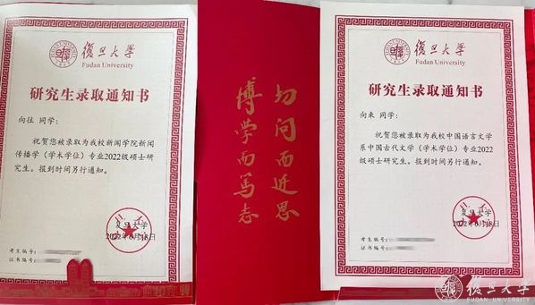 先后收到两份复旦大学
