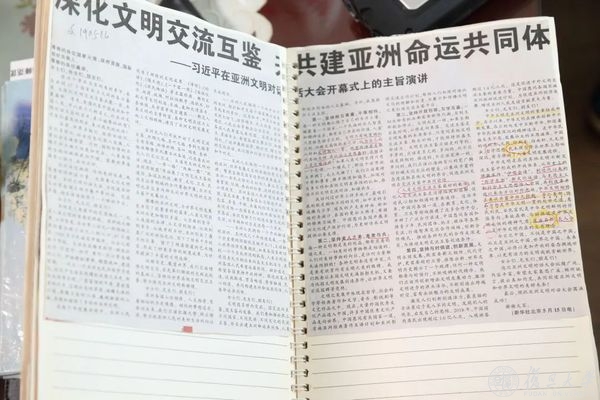 “每次讲课,不管讲过多少遍,我都要更新材料,要换更好、更能说明问题的材料。”在他看来,当老师的,“肚皮”空空是不行的,因此读到重要文章时,他总会反复地读,并写满密密麻麻的笔记;报纸上的文章他也会看,精彩的还会把它们剪下来,整理成一本本剪报本。“这些材料在讲课的时候大有用处,你要讲课讲得好,没资料是不行的。”