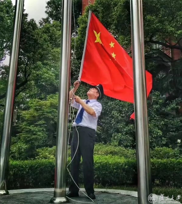 第一件事永远是升国旗。在新闻学院副教授徐佳的随笔里,那是姜师傅“一个人执行的仪式”:先是擎着国旗从传达室走向旗杆,再将国旗升到最高处,一脸严肃地行注目礼。缠好旗绳后,才恢复到平日里笑意盈盈的样子。
