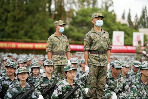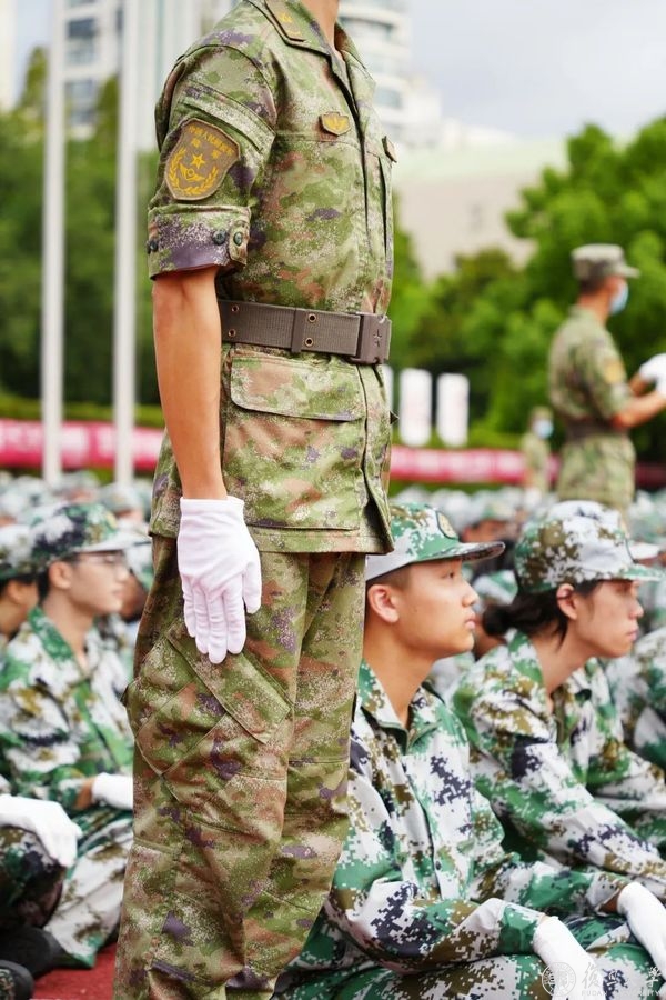 炎炎夏日,太阳烘烤着大地,脚底传来的热浪,额头上豆大的汗珠顷刻落下,但双手依旧贴紧裤子,抬头挺胸站直。军训里有“计密智安,毫不手软,金瓯无缺,你好世界”的嘹亮口号;军训有同学们自信骄傲的“十六连”。