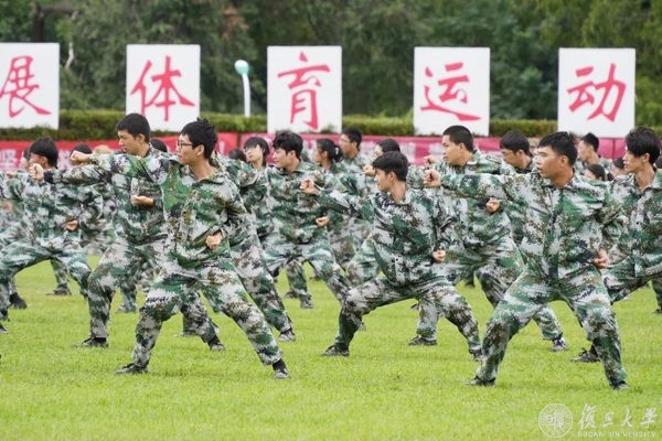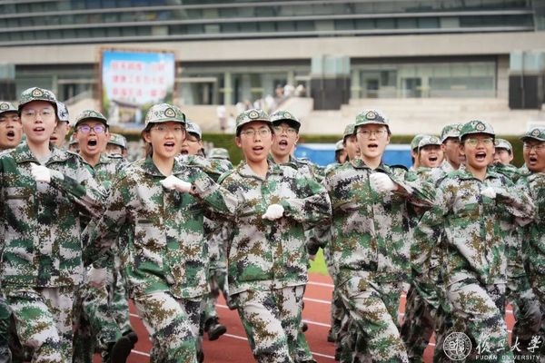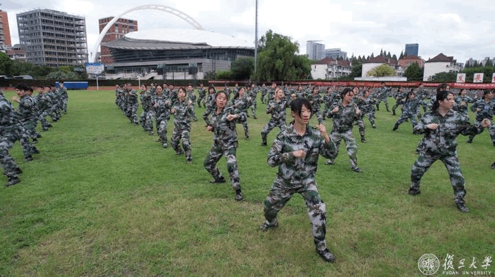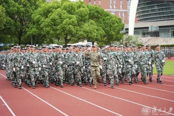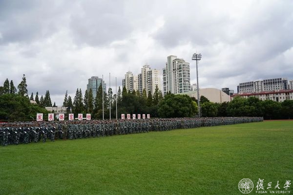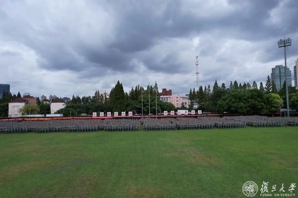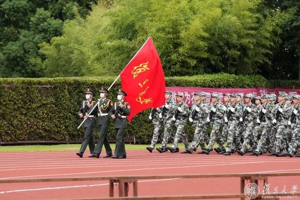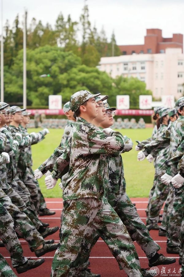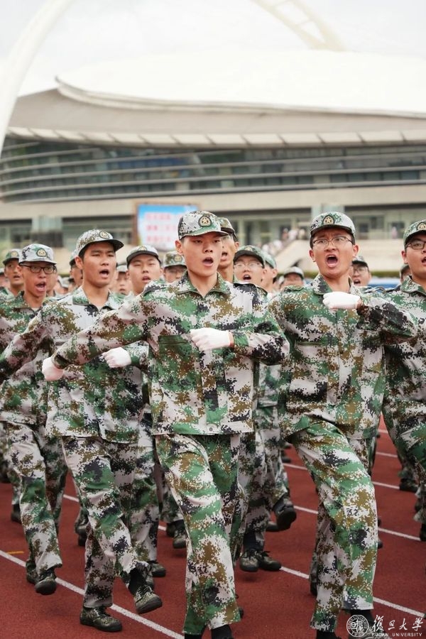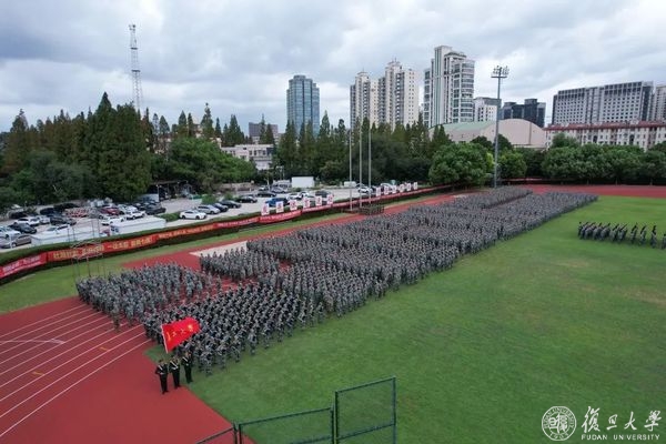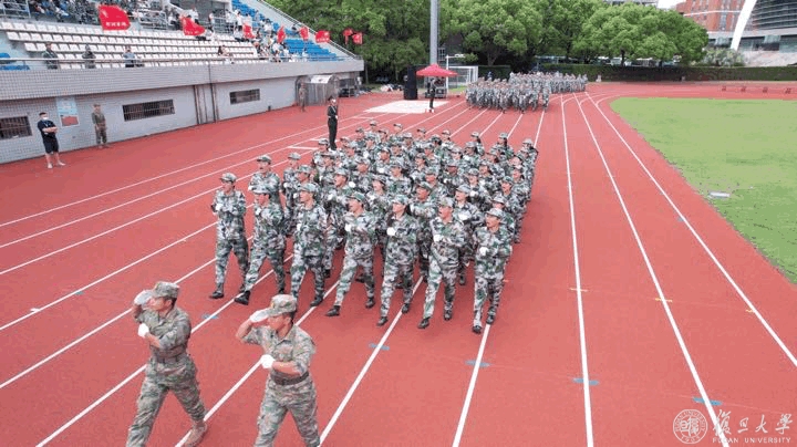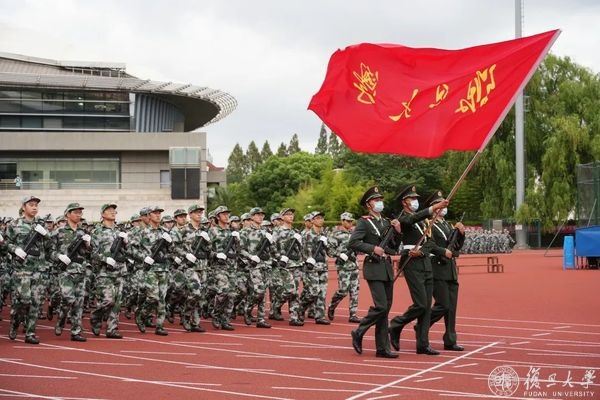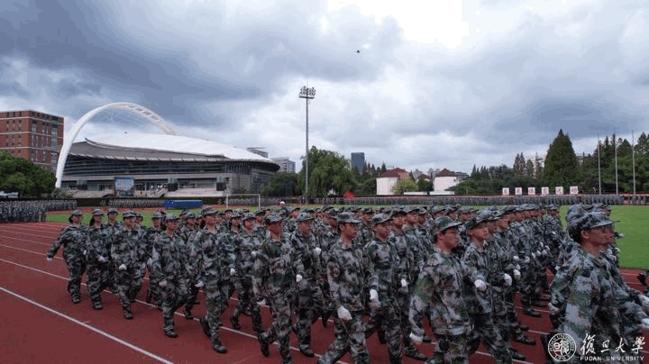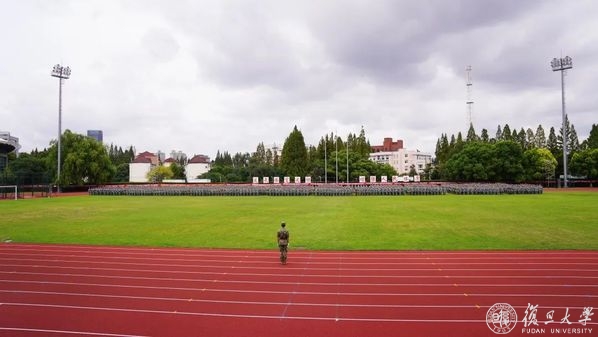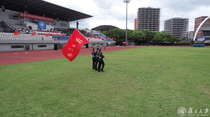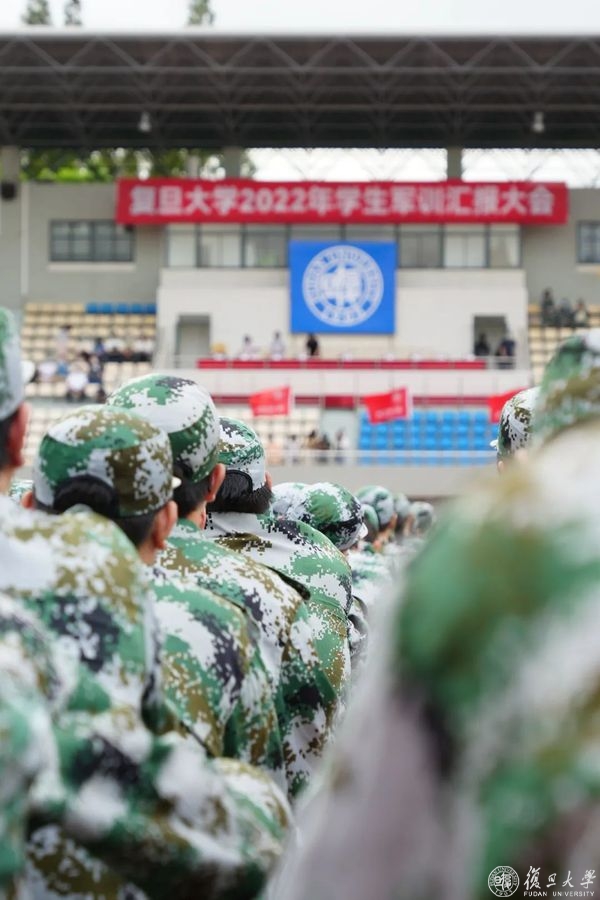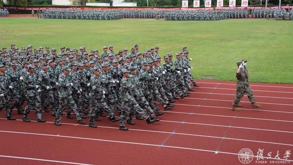9月2日下午,复旦大学2022年学生军训汇报大会在邯郸校区南区体育场举行。