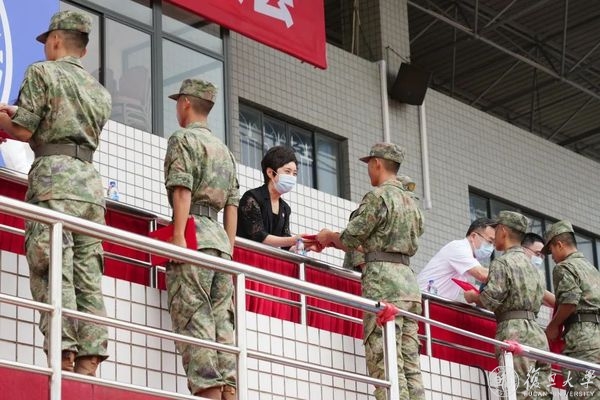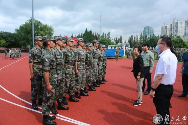 此次承训的教官队伍中,还有15名来自复旦大学的参军退伍学生。上半年疫情来袭时,他们发挥中流砥柱、不可替代的作用。此次军训,他们挺身而出,受命于困难之际,为学校立德树人承担重任。焦扬代表学校党委向他们表示衷心感谢,期待他们继续发扬在部队锤炼出来的优秀品质、优良作风和传统,在“第一个复旦”建设过程中,带动更多的学生为祖国成才、为人民建功。