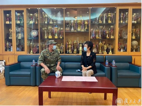 军训汇报大会开始前,焦扬会见承训部队领导,感谢部队克服各种困难,精心挑选60名骨干官兵来到复旦完成承训任务。