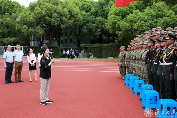 焦扬说,“军训是一场优质的大思政课,军训场就是大思政课最好的课堂。各位教官是我们大思政课最好的教师,军训的内容是我们大思政课最好的教材。”她感谢承训教官为复旦学子上了一堂大思政课,让同学们受益终生。焦扬欢迎承训教官常来复旦,加深军民鱼水情,也祝愿教官们的军旅生涯再创辉煌。