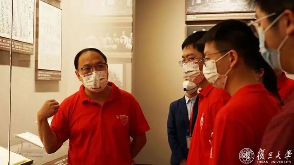 日前,复旦大学《共产党宣言》展示馆“星火”党员志愿服务队师生(以下简称“星火”队)开展沪上实践研学。巴士车变身“移动式课堂”,队员们上手“流动式讲解”,场馆里开展“互动式研学”。沿着总书记的上海足迹、光荣之城的红色脉络,“星火”队员再次牵手“小火苗”。这一堂“行走的党课”走“心”又走“新”,让“强国追梦”成为青春奉献的切实行动。