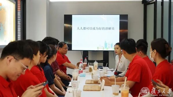“登上中国第一高楼,不仅可以领略建筑的高度、视野的广阔,更可以感悟信仰的高度、理想的远大。”上海中心大厦22层,从扩音器中传来讲解声,正在讲解的不是场馆的工作人员,而是“星火”队员、新闻学院2020级硕士生杨泽璇。由于疫情原因部分场馆无法提供讲解服务,队员们在这场“行走的党课”中承担起讲解员的角色,在“移动式讲解”中边实践边学习。跟随杨泽璇的讲解,队员们了解金融城党的基层组织架构、楼宇党建工作情况,体会到上海在基层党建工作上的创新与突破。