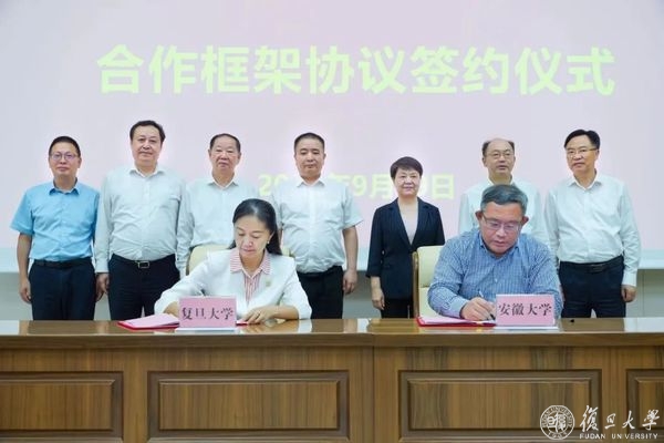 复旦大学党委副书记尹冬梅和安徽大学党委副书记、常务副校长陈诗一代表两校签署合作框架协议。两校确立合作关系,进一步丰富了省校合作内容,是省校教育领域合作的重要落脚点之一。双方将聚焦一流学科建设任务和要求,共同推进材料学科深度合作,优势互补、共赢发展。同时,在学科建设、人才培养、人员交流、科学研究、智库建设等方面开展合作,共同以“双一流”建设的扎实业绩赋能长三角区域高质量发展。