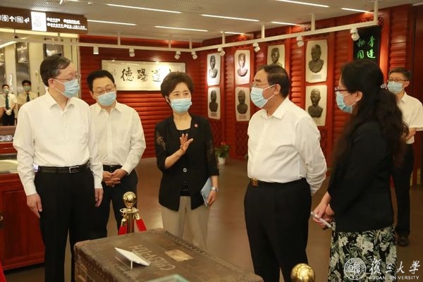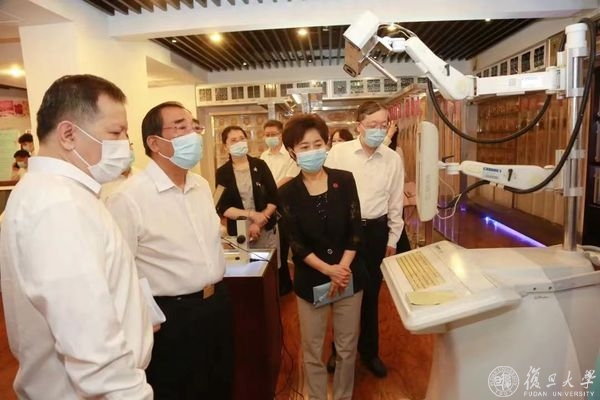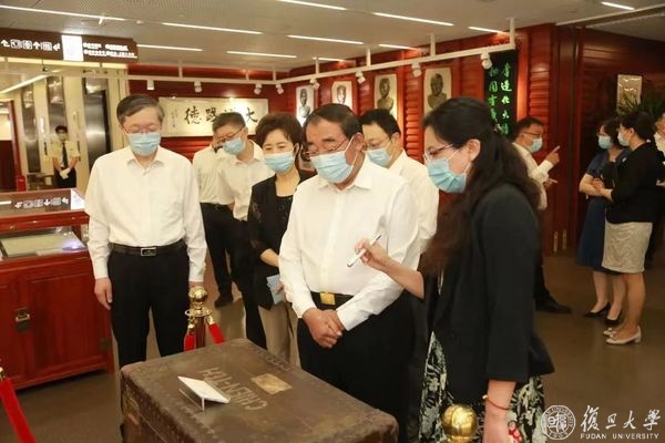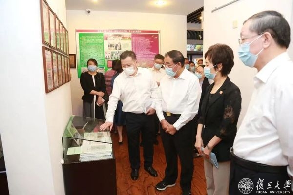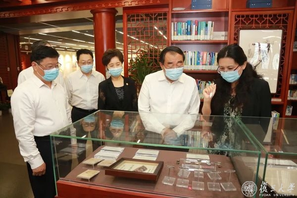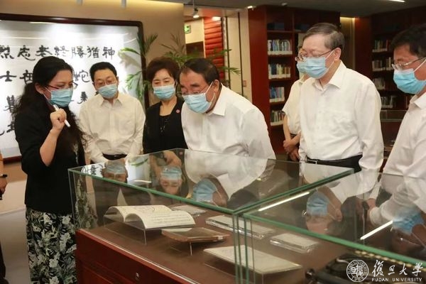 上医人文库位于复旦大学图书馆医科馆(康泉图书馆)五楼,集中展示历代“复旦上医人”的珍贵史料和实物藏品,设有“上医九三人”片区。展馆保留大量的著述、手稿、教案等史料,通过史料展示复旦上医人为人群服务,秉持正谊明道精神的历代传承。丛斌听取了图书馆副馆长应峻现场对颜福庆、谷镜汧等“上医九三”先贤事迹、相关珍贵文物的介绍,观看了镇馆之宝——复旦上医创始人颜福庆先生使用的打字机、毕业论文原文等馆藏文物。
