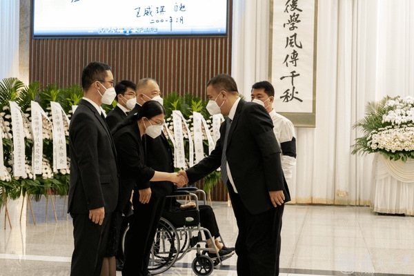 距离告别仪式还有半个多小时,前来吊唁的人络绎不绝。与王威琪合作多年的中国工程院院士、复旦大学附属华山医院神经外科主任周良辅提前抵达,慰问王威琪家属。
