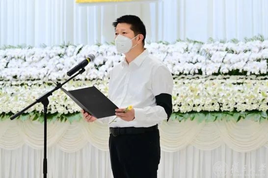 复旦大学党委常务副书记裘新在告别仪式上介绍社会各界哀悼、关心、慰问情况。党委常务副书记周亚明宣读王威琪同志生平。副校长汪源源主持告别仪式。