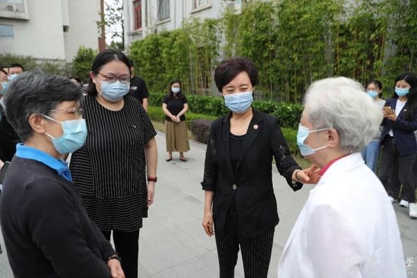 仪式开始之前,在烈士雕塑纪念广场,焦扬与家属代表们亲切交谈,追忆已逝先烈,关心他们的生活近况,向他们对学校的支持表示感谢。