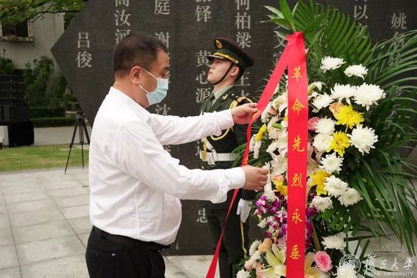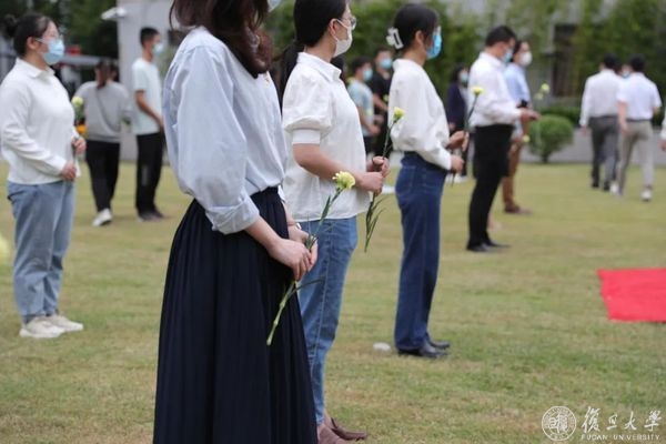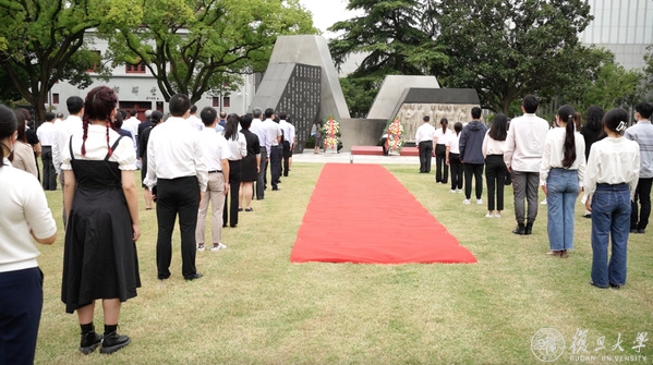 复旦大学党委书记焦扬,校长金力,裘新、周亚明、尹冬梅、金海燕、张人禾等学校党政领导班子成员和各部门、各院系师生代表,参加烈士纪念日活动。仪式由复旦大学党委常务副书记裘新主持。