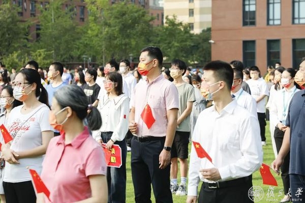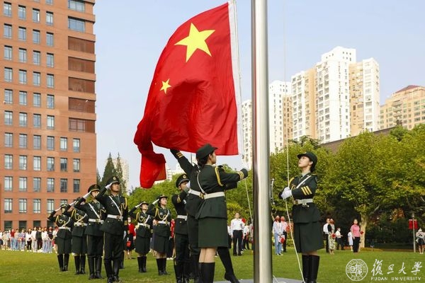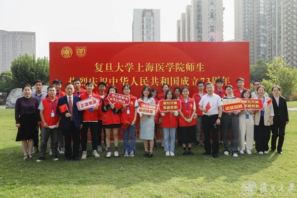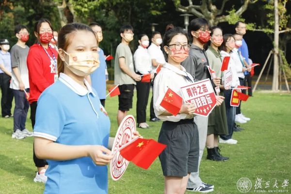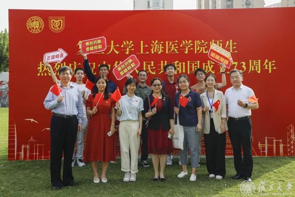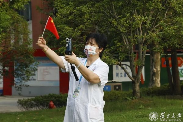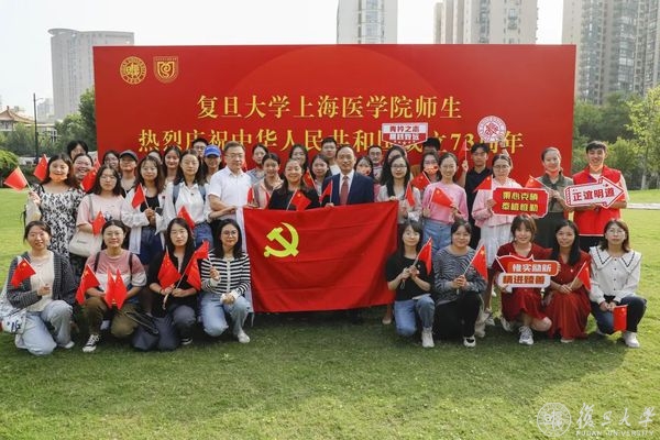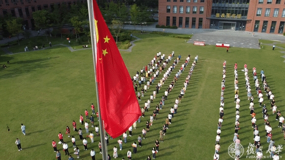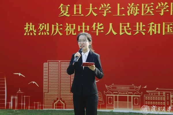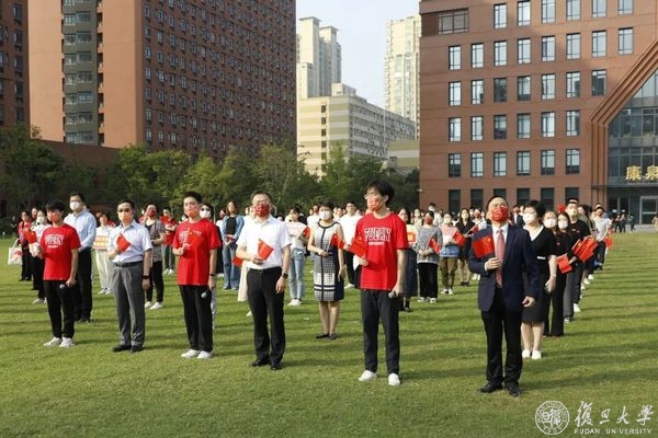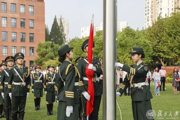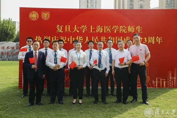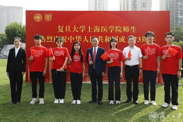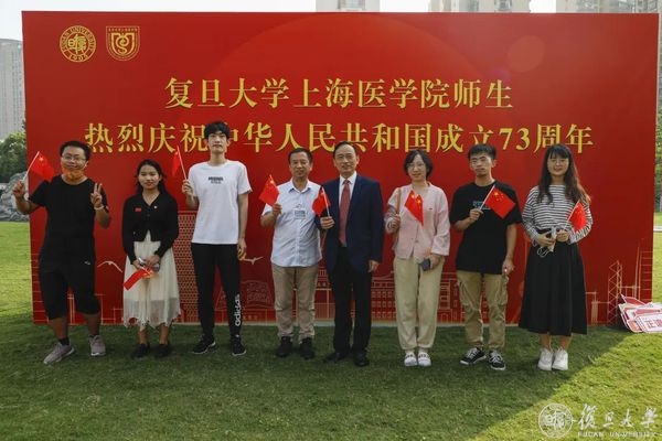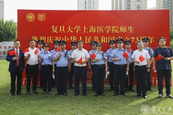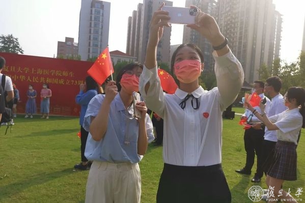 10月1日早晨,复旦大学上海医学院国庆升旗仪式举行