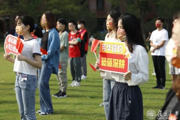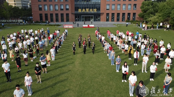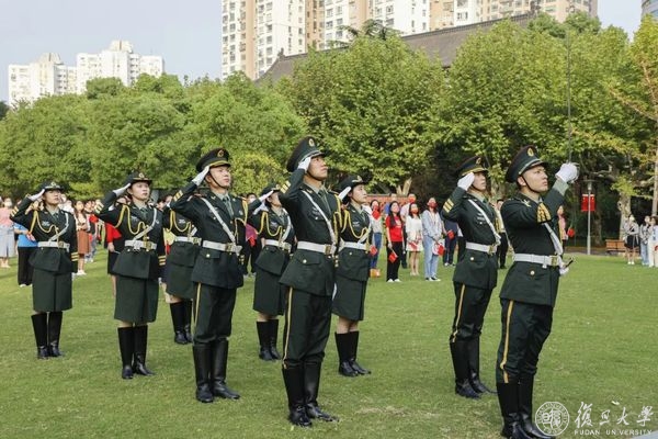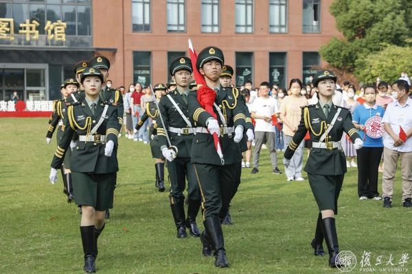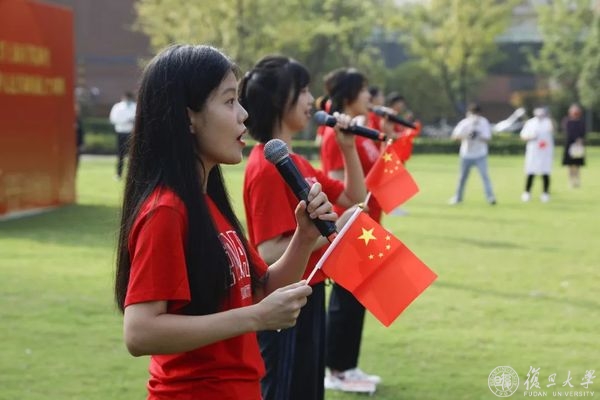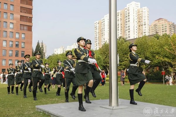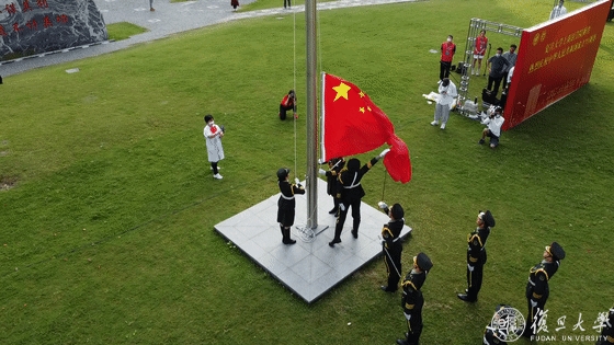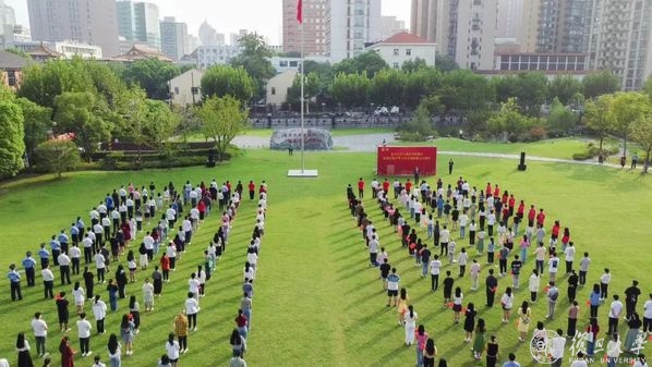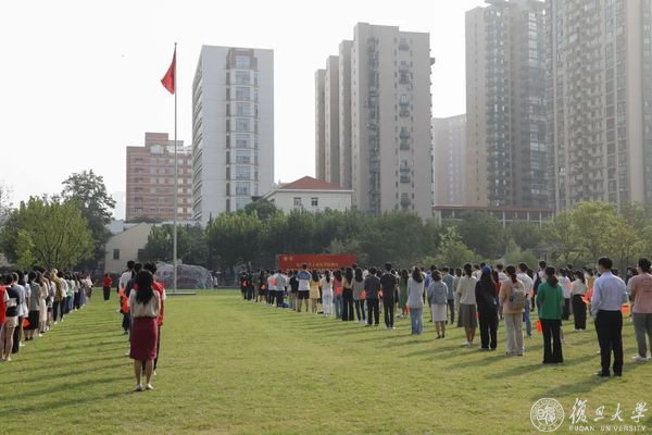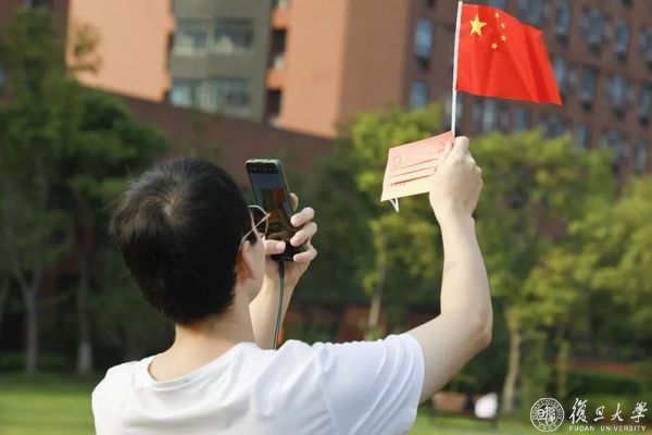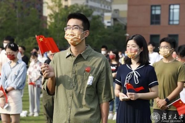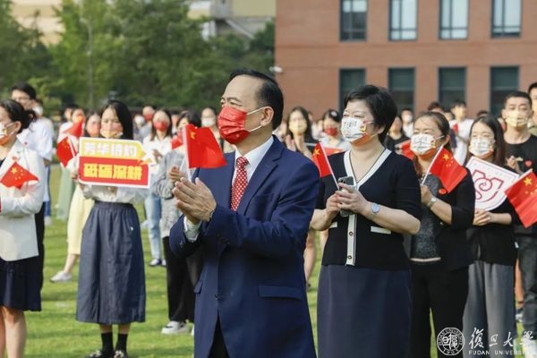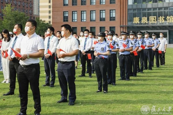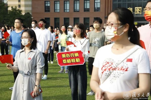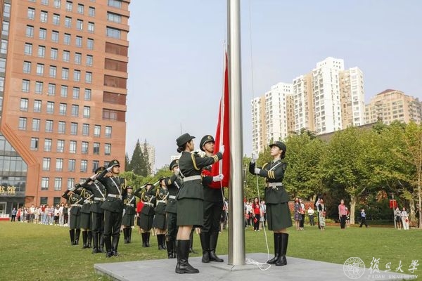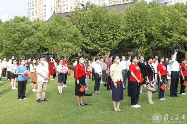 10月1日早晨,复旦大学上海医学院国庆升旗仪式举行