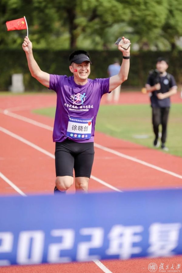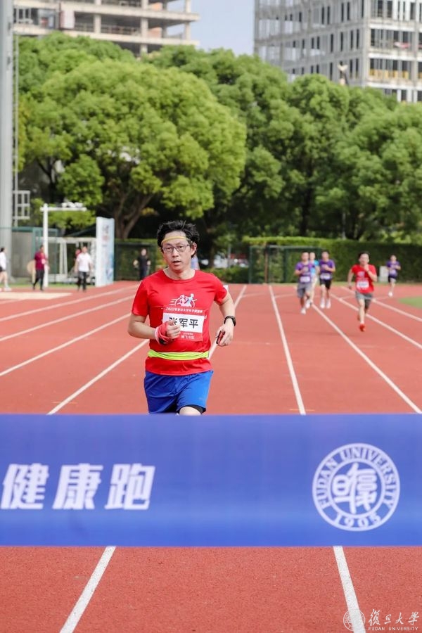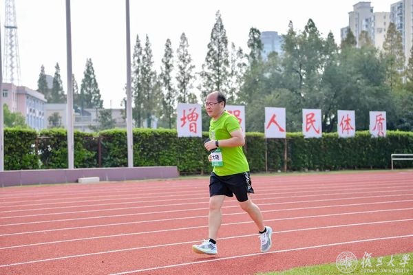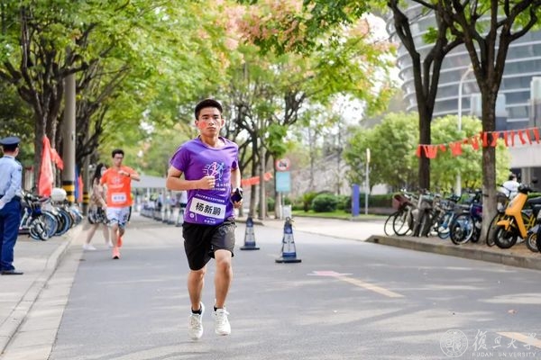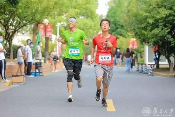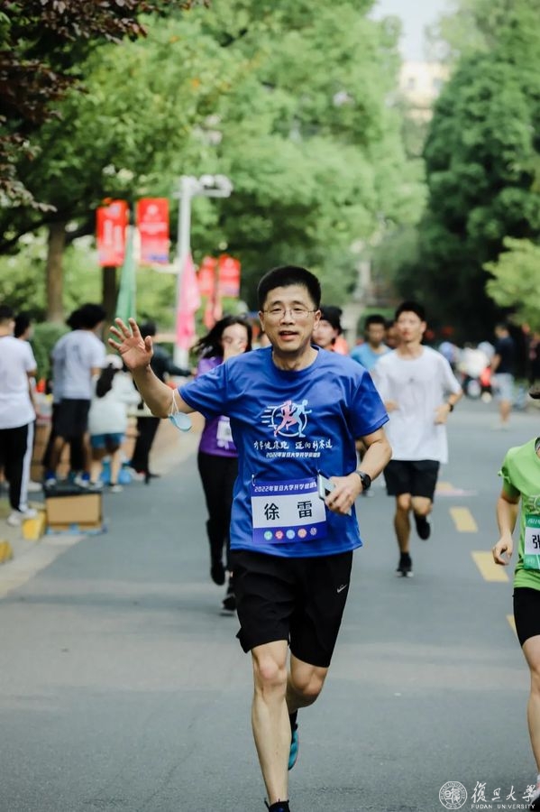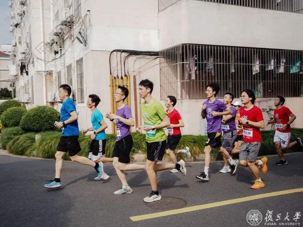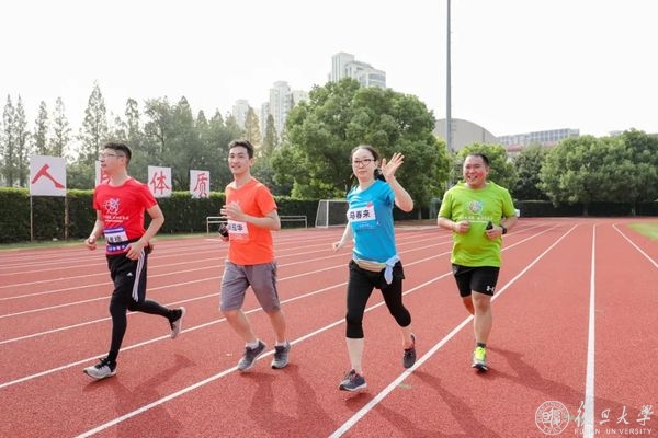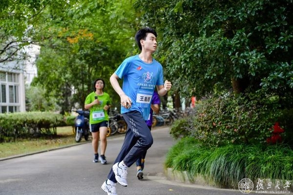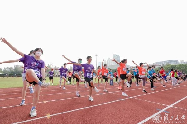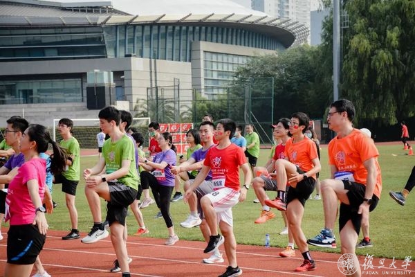 压腿,拉伸,侧身转体,复旦师生们开始热身。筋骨舒展开、身体暖起来,奔跑的步伐更加矫健。