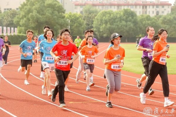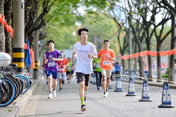 本次健康跑全程5km,以书院为单位组队参加。跑者们身着书院代表色的跑衣,红橙绿蓝紫,绘出赛道上美丽的一抹虹光。