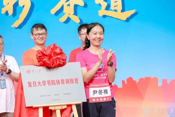 党委副书记尹冬梅为书院体育训练营揭牌