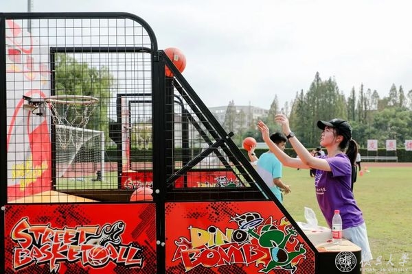 田径场里有丰富多彩的趣味体育活动,篮球机、足球射门、丢沙包、射艺,大家在快乐游戏的同时,也锻炼身体、收获健康。