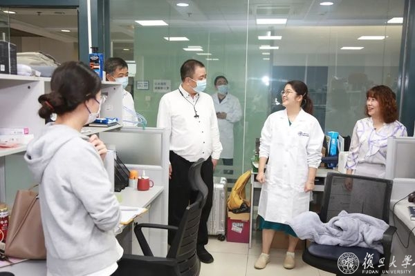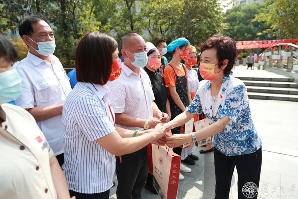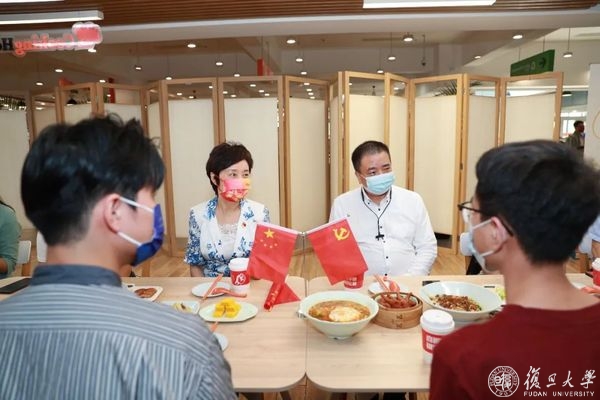 10月1日上午,复旦大学党委书记焦扬、校长金力走访慰问在校师生及员工代表,参加师生活动,一起欢庆节日。党委副书记尹冬梅、副校长徐雷、副校长汪源源陪同。
